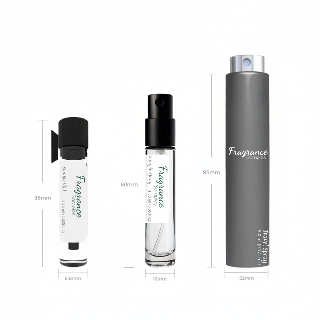 The retail bottle shown is for reference only and is not included with purchase. FragranceSamples rebottles authentic fragrances from their original packaging into smaller atomizers, vials, or decants. FragranceSamples is an independent entity with no affiliation to the brand or manufacturer. All trademarks remain the property of their respective owners.